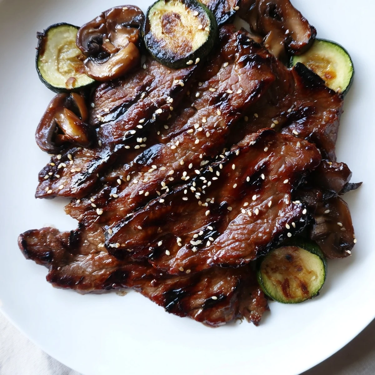 Experience authentic Japanese barbecue with this quick and flavorful beef dish. Thinly sliced ribeye or sirloin gets marinated in a rich blend of soy sauce, mirin, sake, and aromatic sesame oil, then grilled to caramelized perfection alongside fresh vegetables.