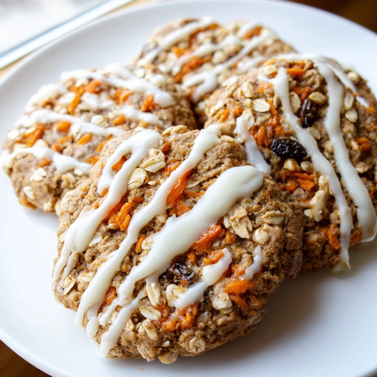 The first time I made these, my kitchen smelled like a bakery in autumn, warm cinnamon and grated carrots filling every corner. My roommate wandered in, mid phone call, and immediately asked what kind of cake I was baking. When I handed her a warm cookie with that cream cheese drizzle still glistening, she paused, took another bite, and said okay, these are dangerous.